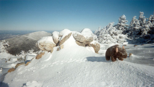 We reached the cars at 3:10, making a record-time round trip of less than 9 hours for a trip is listed in the guidebooks as being 10 hours and 20 minutes in summer conditions! Tired and hungry, we dragged ourselves to Elvio's, a little pizza shop in North Conway. We inhaled a couple of pizzas and returned to Intervale shortly after 6pm. Most of the cabin guests chatted until 10pm that evening, but at least two from our hike weren't able to maintain consciousness past 9. We slept in the next morning, surprised to find a good seven inches of new snow on the ground when we woke at 9.