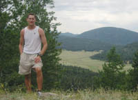 On Wednesday, I hiked up to Caballo Mountain - one of the tallest visible peaks to the west of Los Alamos, with a large open pasture visible near the summit. I started at the Pajarito Ski Area at 10:20am. The trail begins at the entrance to Camp May where it traverses a ridge along the boundary of the Cerro Grande Fire's furthest extent. This is one of the few locations on the hike where the fire damage is evident. This trial soon opens into Caņada Bonita, a stunning meadow nestled between two hills that offers a view of Los Alamos to the east.