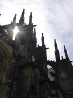 a bird's eye view of the city. To the north, the steep spires of the